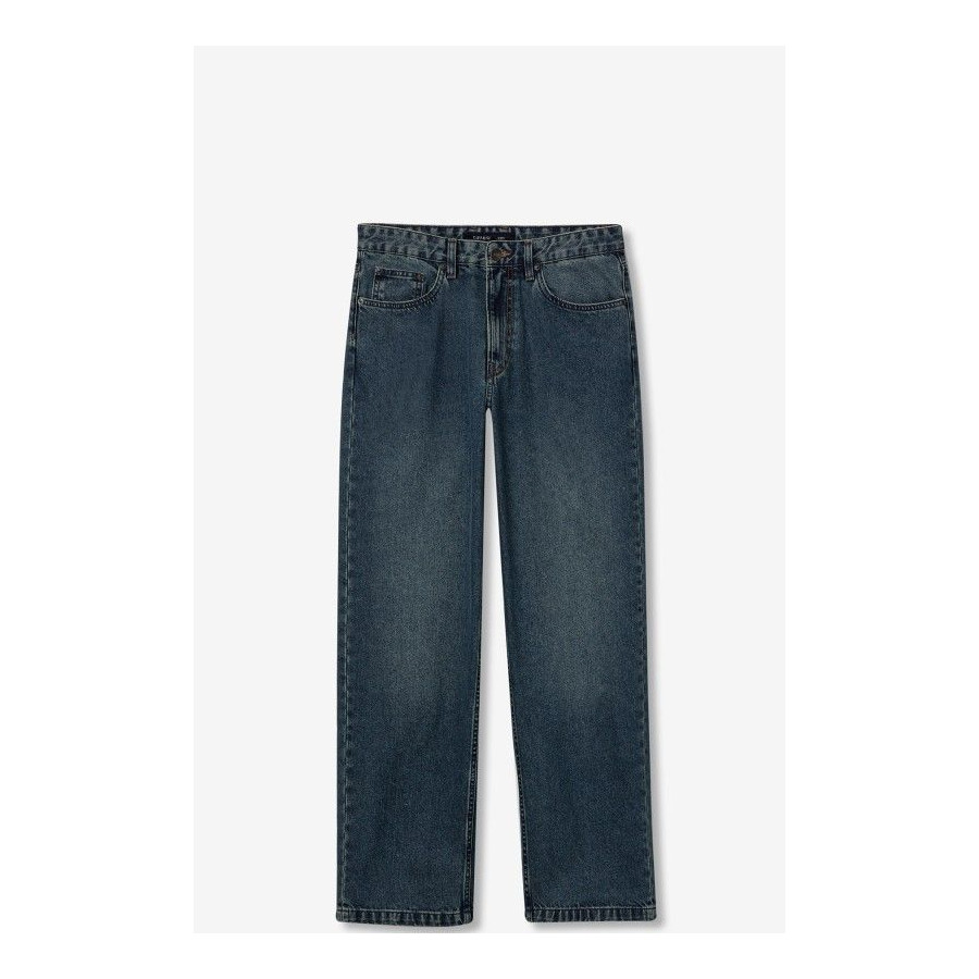 Vaqueros de pierna súper ancha con cinco bolsillos. Cierre frontal de cremallera con botón metálico.